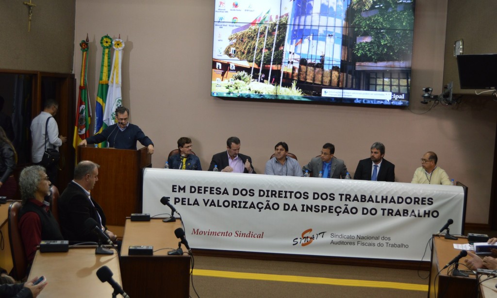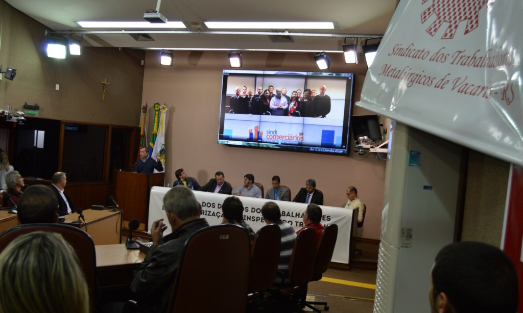 No dia 05 de outubro, na Câmara de Vereadores de Caxias do Sul, o STR de Vacaria e Muitos Capões, juntamente com a Intersindical Vacaria esteve participando de Ato Público contra os ataques aos Direitos dos Trabalhadores e em defesa da Inspeção do Trabalho. Estiveram presentes junto com o STR, o Sindicom, Sindicato da Construção Civil, Sindicato dos Metalúrgicos, e Sindicato do Alimento e Saúde, além de autoridades políticas, dirigentes sindicais entre outras personalidades. 67 entidades sindicais estiveram presentes.