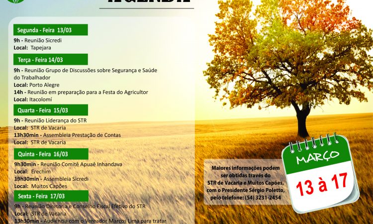 Acompanhe os principais eventos que terão a participação do STR de Vacaria e Muitos Capões.