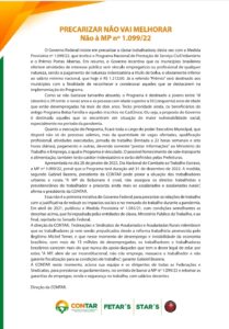 PRECARIZAR NÃO VAI MELHORAR – NÃO A MP nº 1.099/22